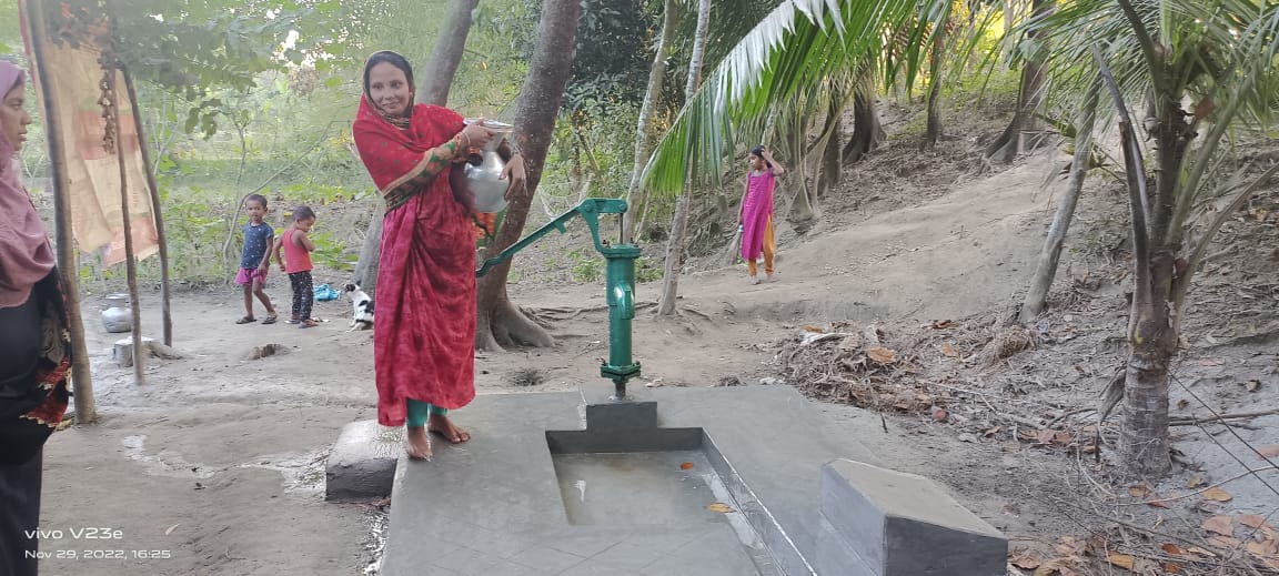 গভীর নলকূপ থেকে উপকাভোগী পানি সংগ্রহ করছে।
