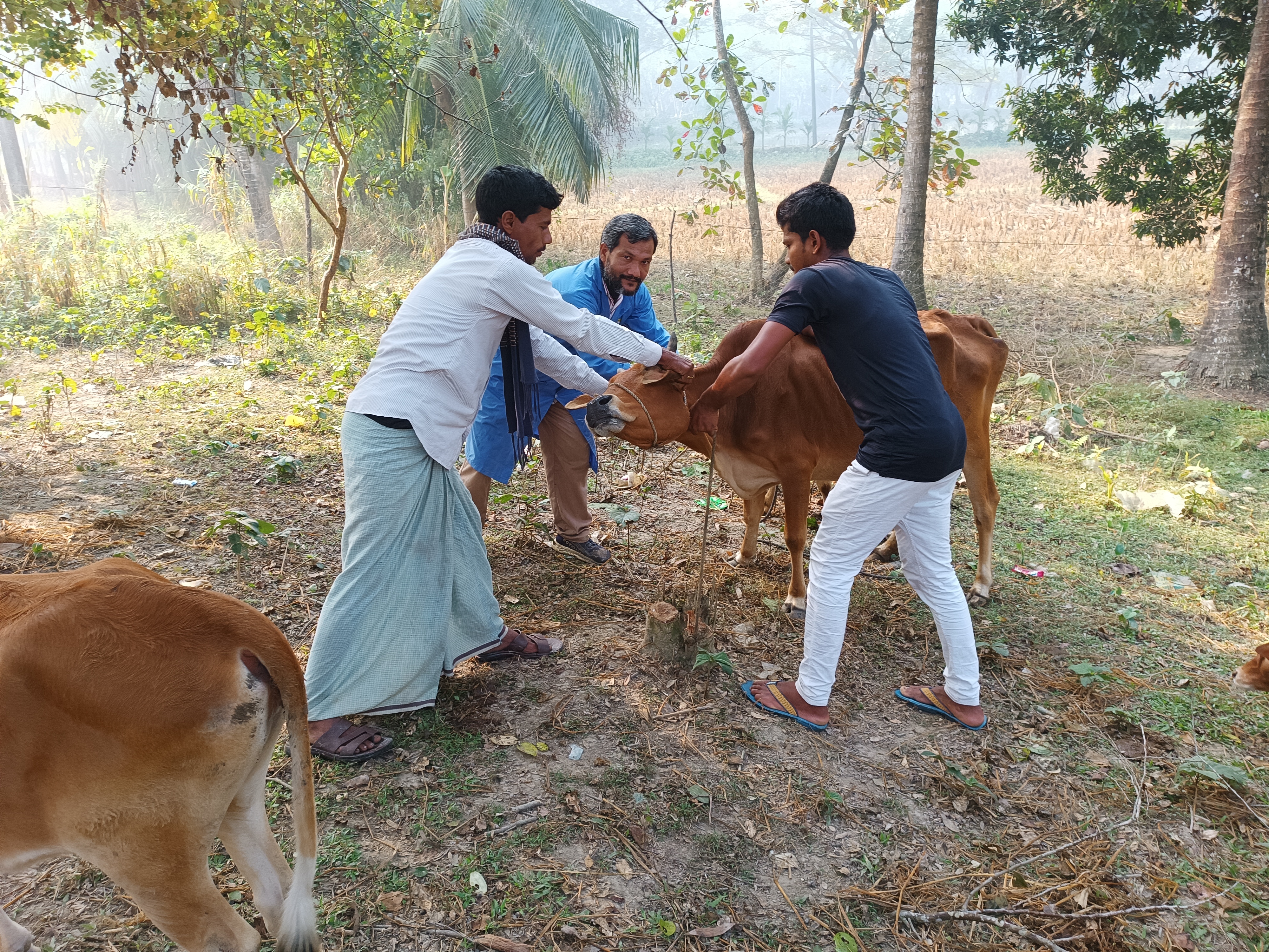 প্যারাভেট গরুকে ভ্যাকসিন দিচ্ছেন।