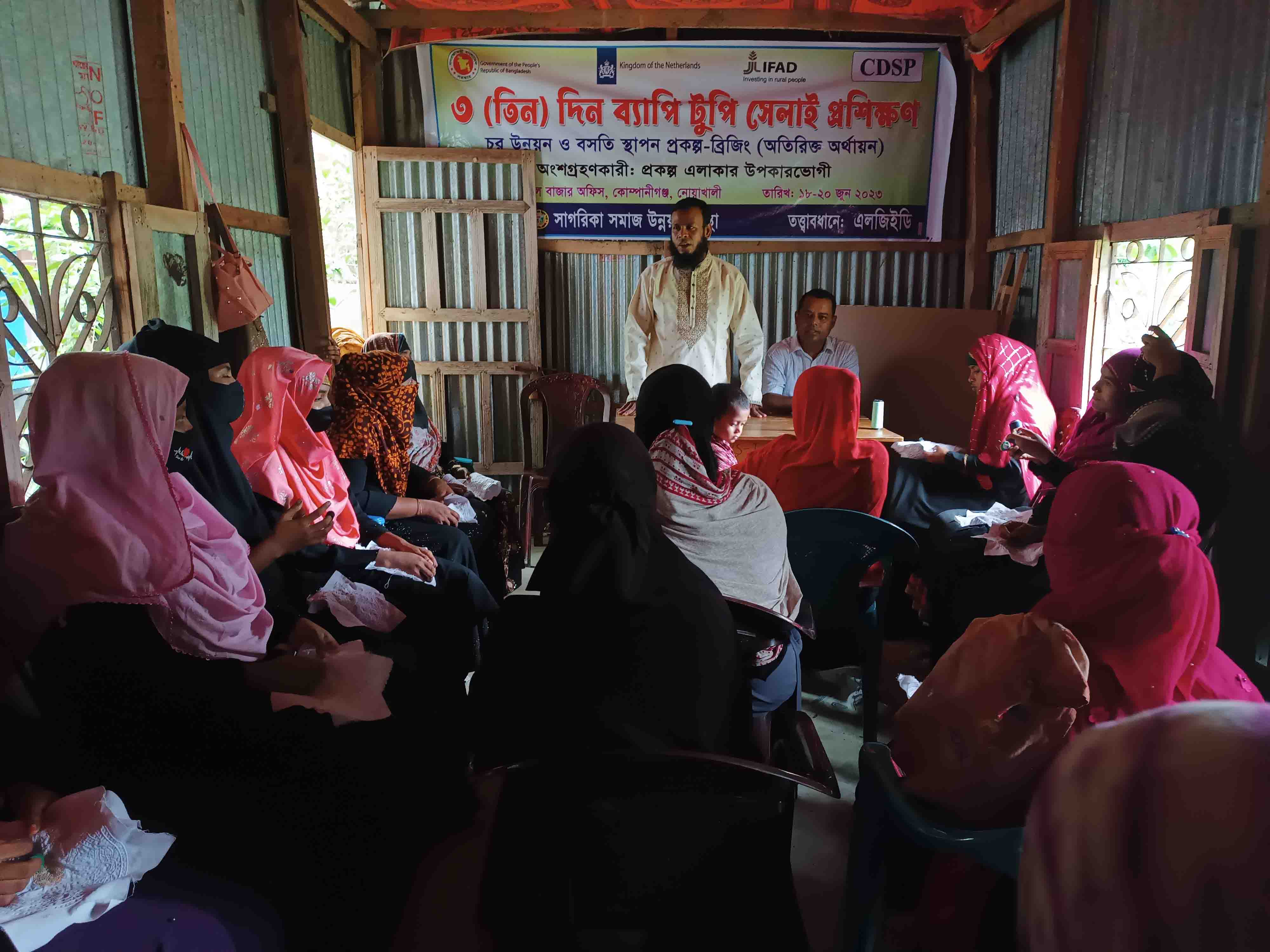 টেইলারিং প্রশিক্ষণে বক্তব্য রাখছেন জনাব মোঃ বজলুল করিম, ডেপুটি টিম লিডার, সিডিএসপি-বি(এএফ) প্রকল্প।