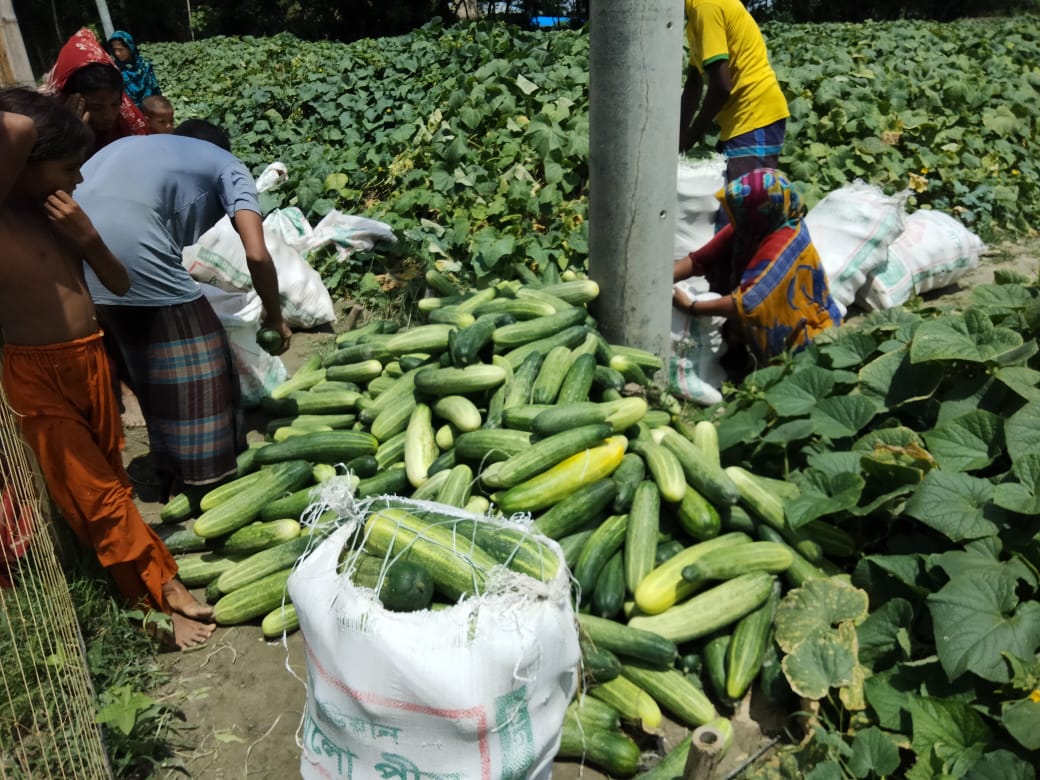 সর্জন চাষীগণ তাদের মাঠ থেকে শশা সংগ্রহ করছে।