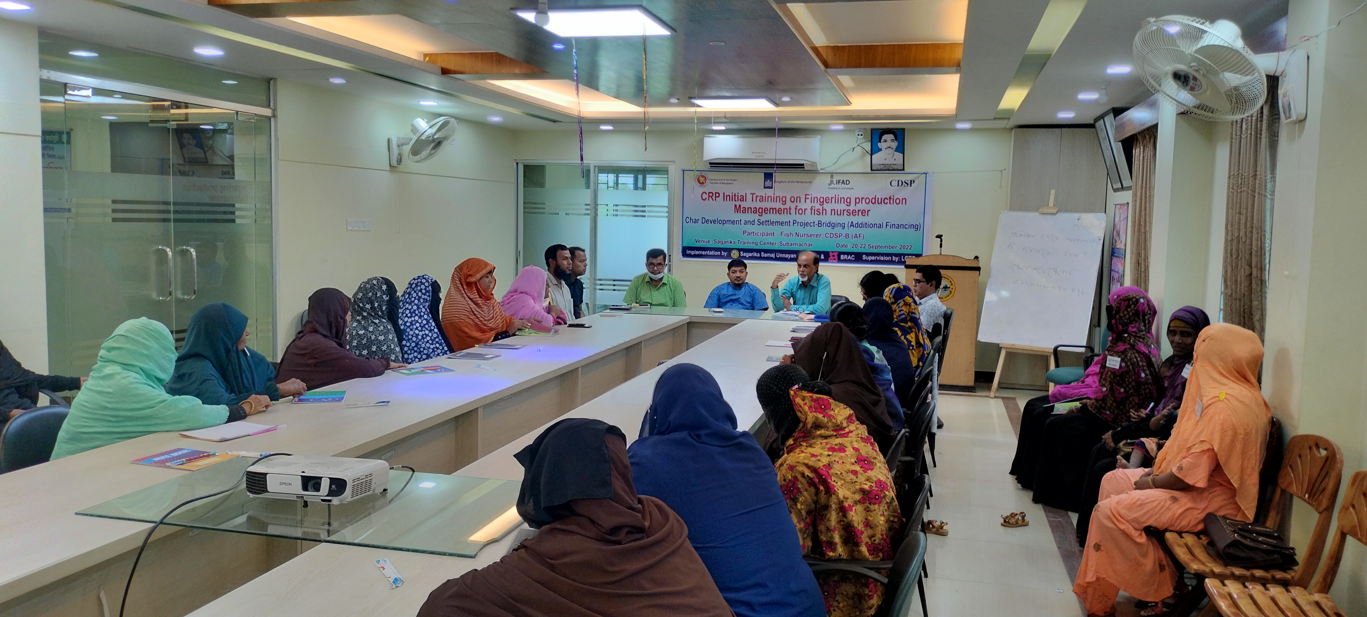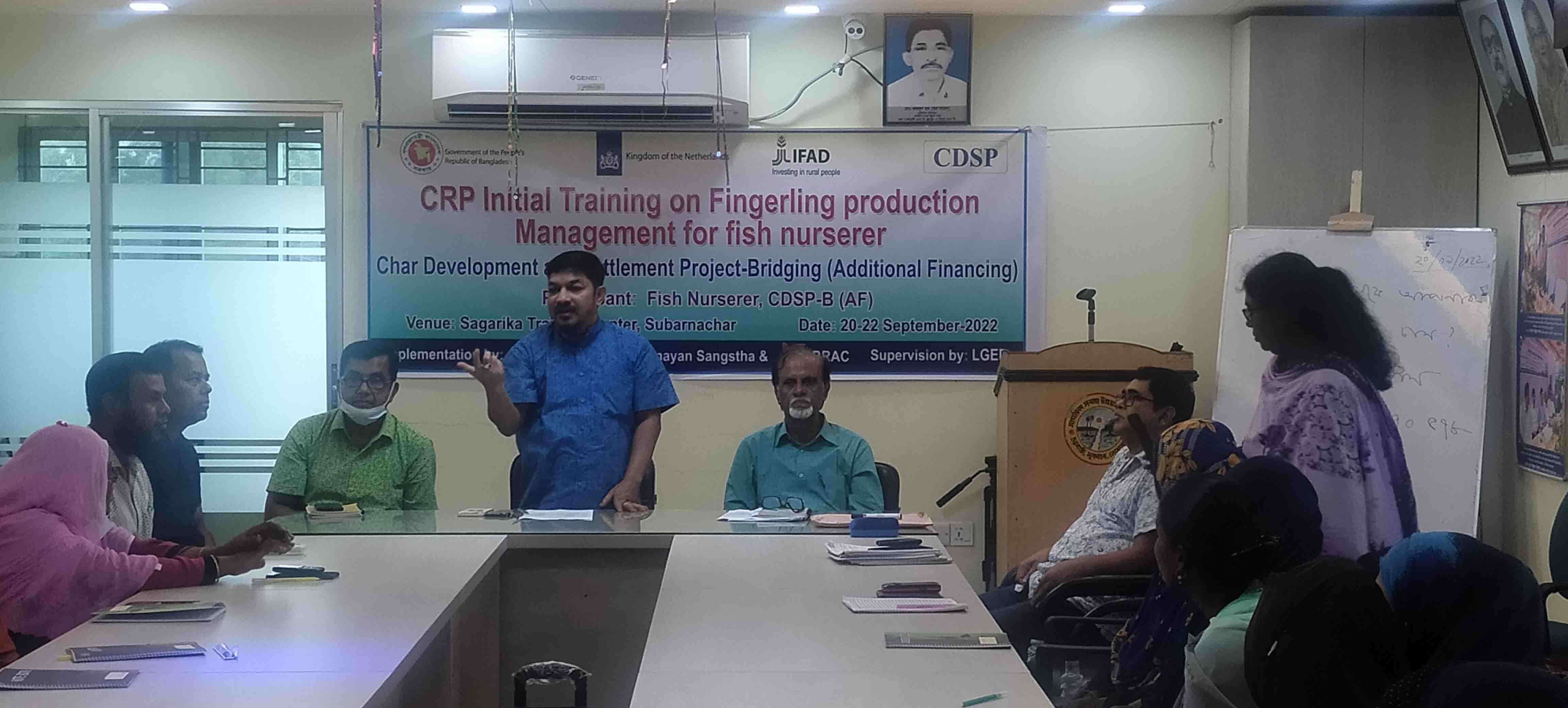 সিআরপি কার্প নার্সারার প্রশিক্ষণে বক্তব্য রাখছেন জনাব মোঃ বজলুল করিম, ডেপুটি টিম লিডার(উন্নয়ন), সিডিএসপি-বি(এএফ)।