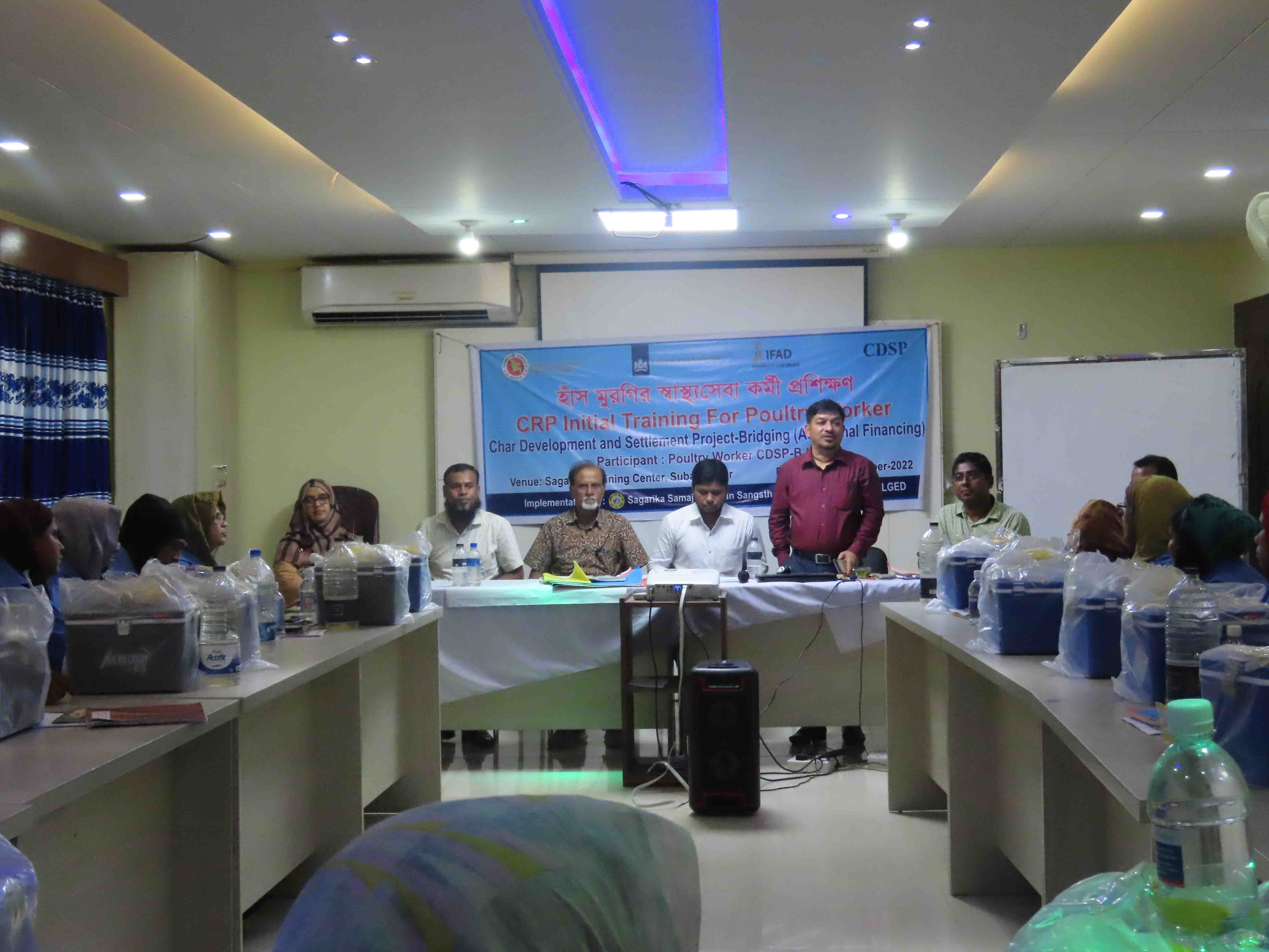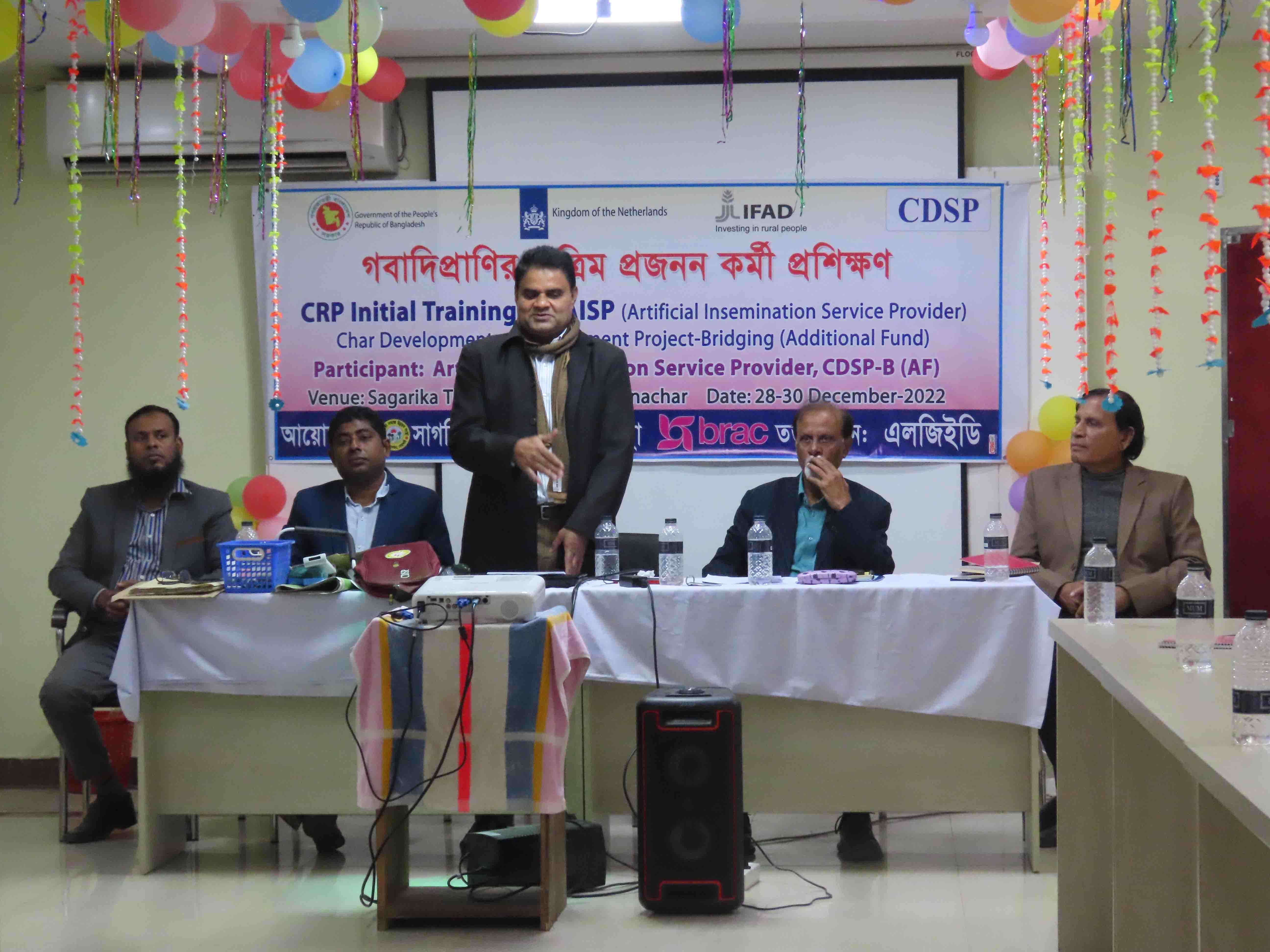প্যারাভেট প্রশিক্ষণে বক্তব্য রাখছেন সংস্থার নির্বাহী পরিচালক, উপস্থিত আছেন সিডিএসপি-বি প্রকল্পের ডেপুটি টিম লিডার জনাব মোঃ বজলুল করিম ও উপজেলা প্রাণি সম্পদ কর্মকর্তা জনাব ফখরুল ইসলাম।