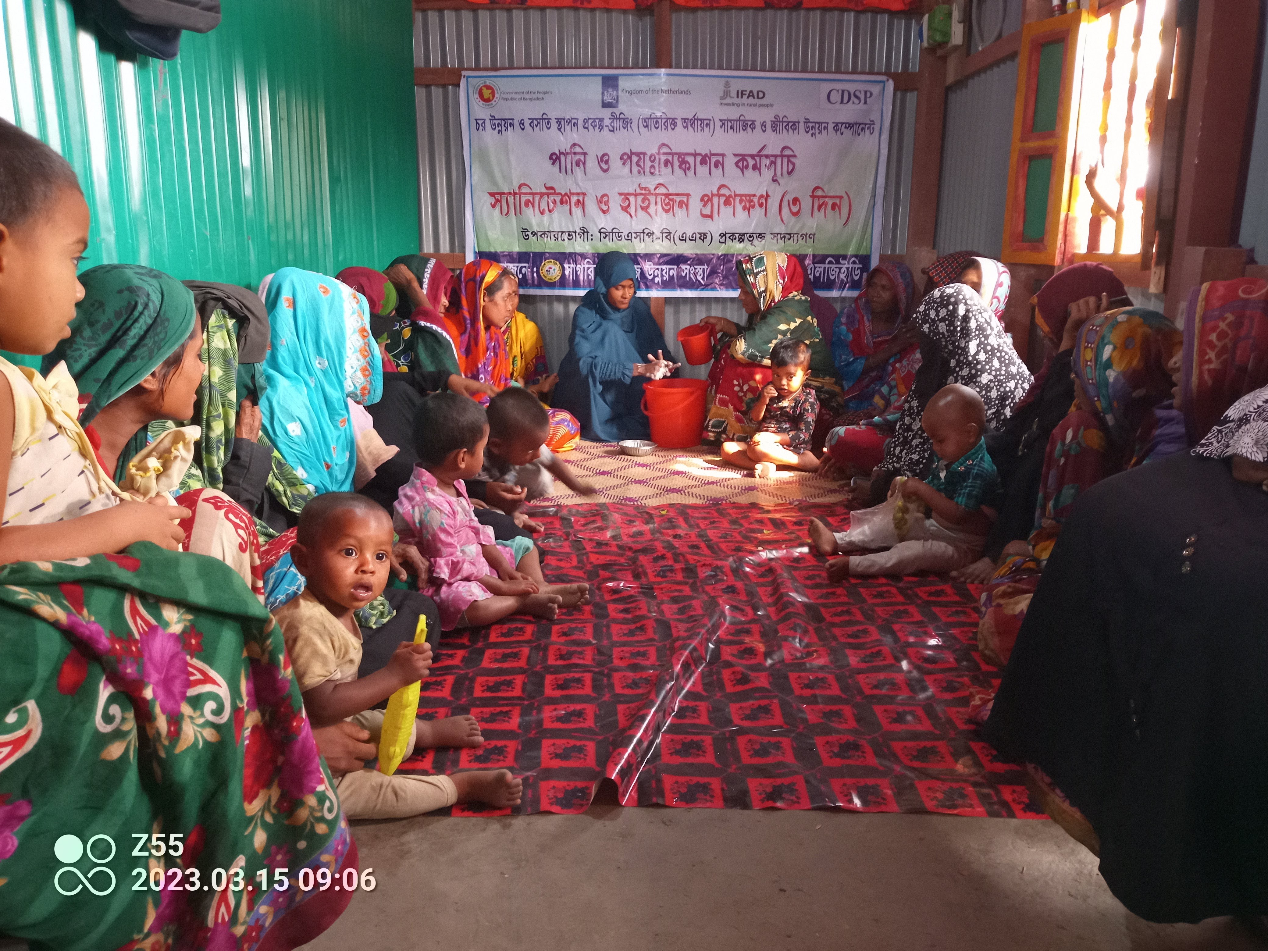 সদস্যদের মাঝে হাইজিন প্রশিক্ষণ প্রদান করা হচ্ছে।